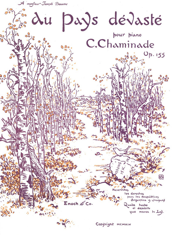 Published in 1919, in the aftermath of the First World War, Au Pays dévasté is dedicated to Joseph Baume,a pianist for whom Chaminade had already written her Duo symphonique for two pianos (1905).