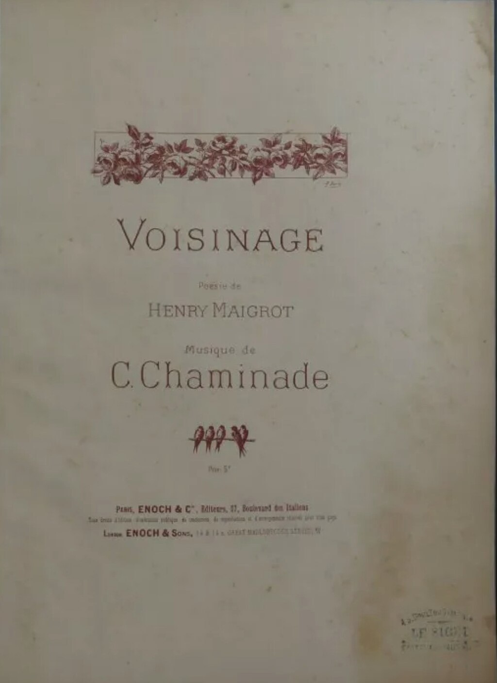 Publisher: Enoch & Costallat Date: 1888Instrumentation: voice: High/Low