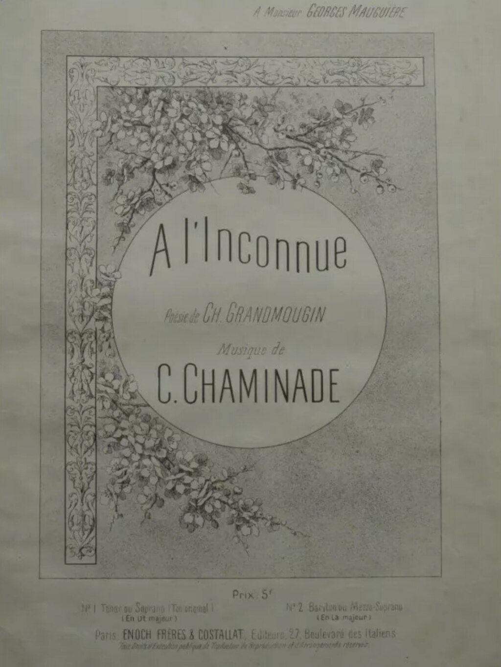 Text by Charles Grandmougin. “To the Unknown,” reflecting the song’s theme of longing and unspoken affection.