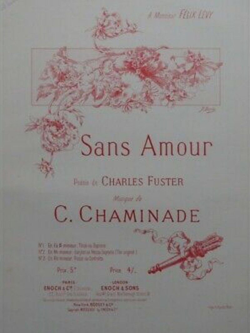 Text by Charles Fuster. “Without Love” explores the emotional emptiness left in the absence of love. Chaminade, in the November 1905 issue of The Ladies Home Journal classified Sans Amour, as a mélodie belonging to the beginning or level one category;